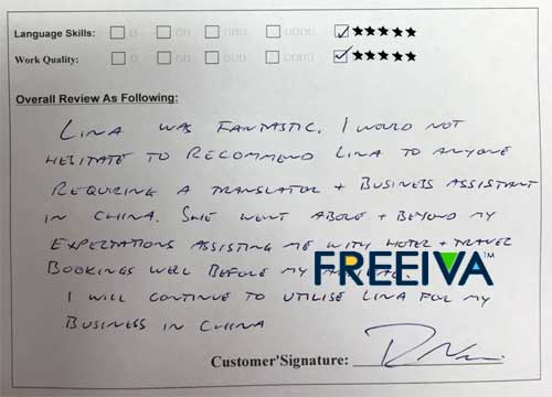 Thank you so much for all the time and extra effort you put into showing me Chongqing. I feel you truly exceeded any expectations I had when I decided to hire an interpreter. I experienced a number of minor issues including culture shock on my travel and you handled these so well and professional. I have no hesitations in recommending you to anyone including my friends. I look back on my travels now and know you positively made my time much more interesting and exciting.